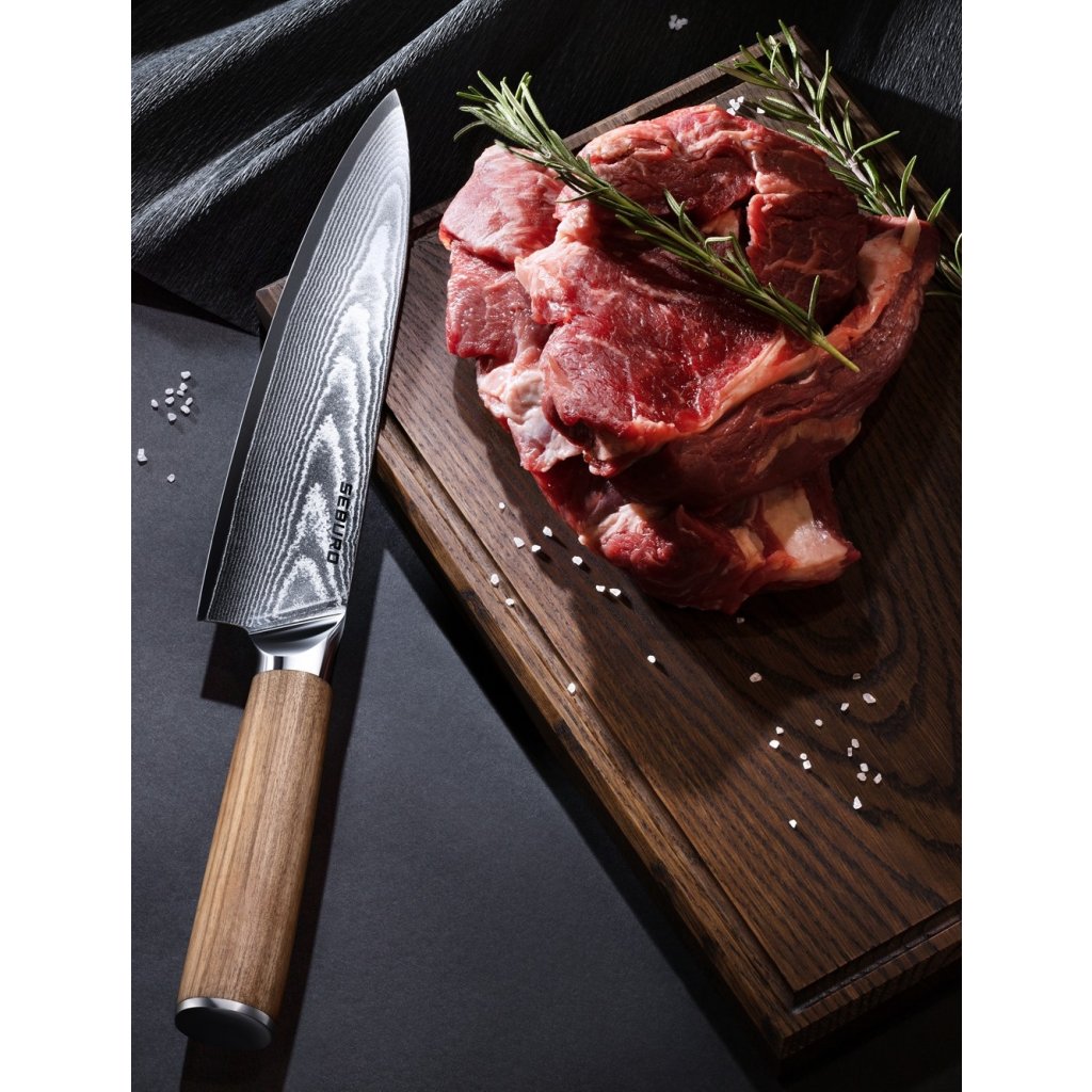 Seburo HOKORI je pohodlný nůž s délkou čepele 250 mm vyrobený z vysoce kvalitní damaškové oceli. Rukojeť je z přírodního olivového dřeva. Protože jde o nůž v evropském stylu, má i charakteristický oboustranný výbrus, čili práce s ním vám půjde ihned od ruky.